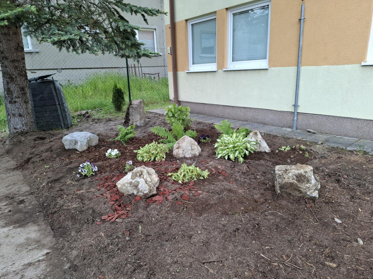 betónové črepínky dostali nový náter a výsadbu,