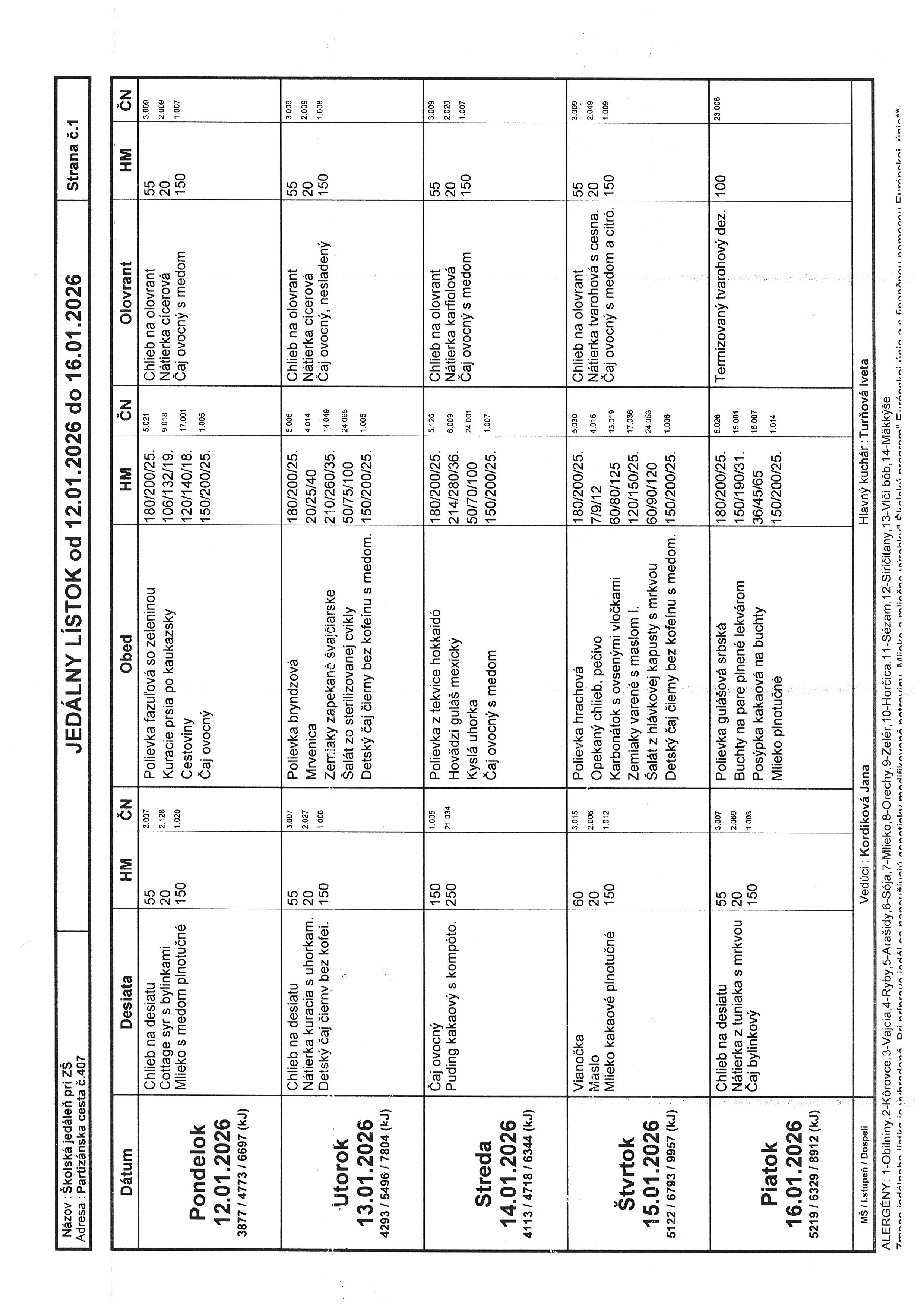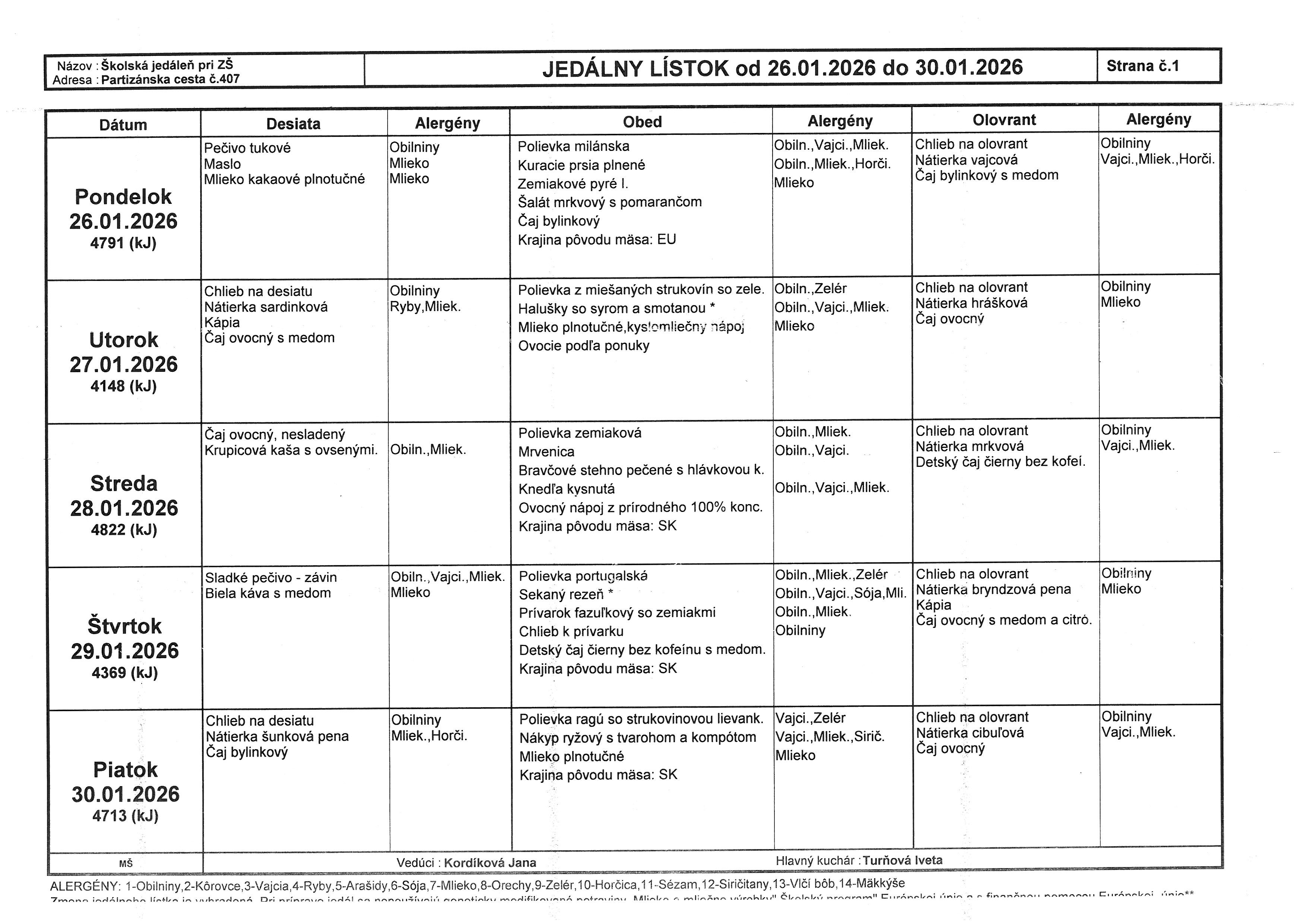 Vedúca školskej jedálne: Jana Kordíková